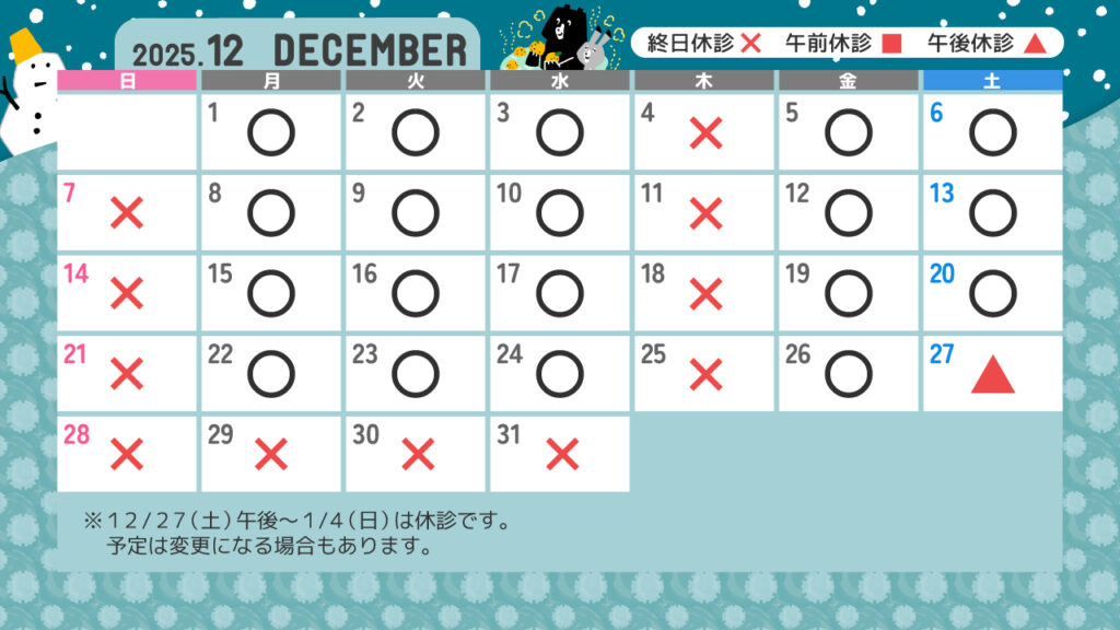 | 診療時間 | 月 | 火 | 水 | 木 | 金 | 土 |
