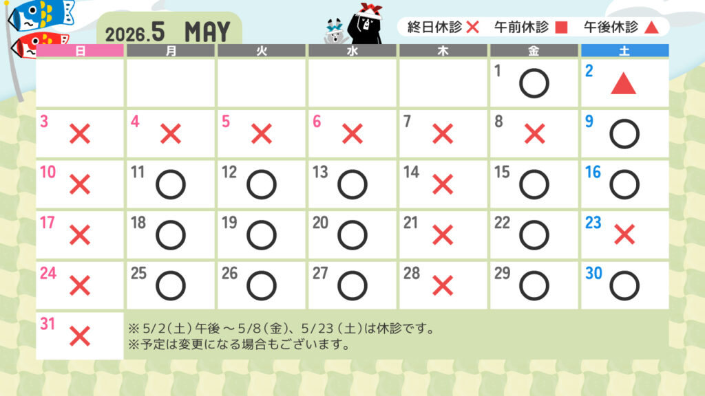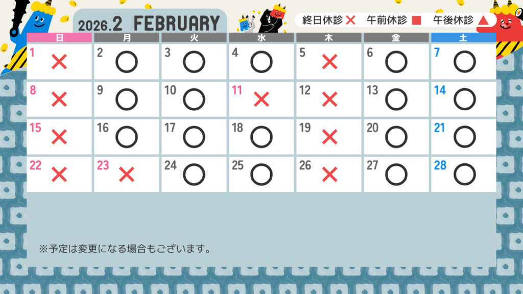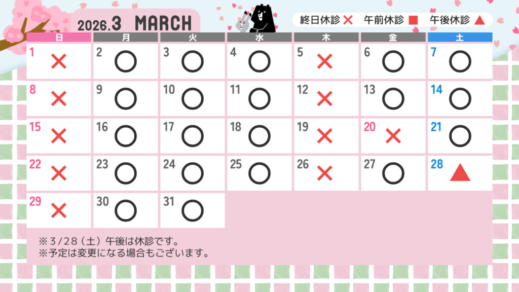| 診療時間 | 月 | 火 | 水 | 木 | 金 | 土 |
